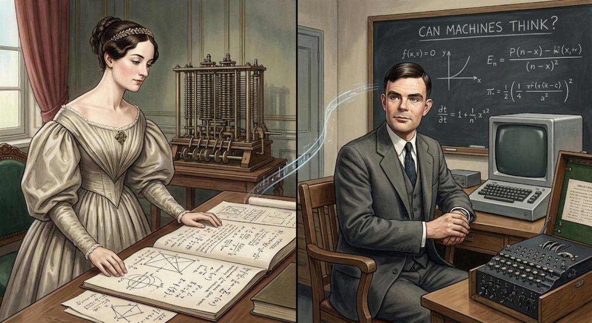 Sanayi İhtilali ve sonrasında ise işin rengi büsbütün değişerek mekanikten saf matematiğe gerçek kaymaya başladı. Bu periyodun en çarpıcı figürlerinden biri olan Ada Lovelace, makinelerin yalnızca sayı hesaplamaktan fazlasını yapabileceğini, hatta beste bile yapabileceğini öngörerek tarihin birinci bilgisayar programcısı unvanını aldı lakin yapay zekâ kavramının tam manasıyla ete kemiğe bürünmesi ve teorik altyapısının oluşması, İkinci Dünya Savaşı yıllarında Alan Turing sayesinde oldu.