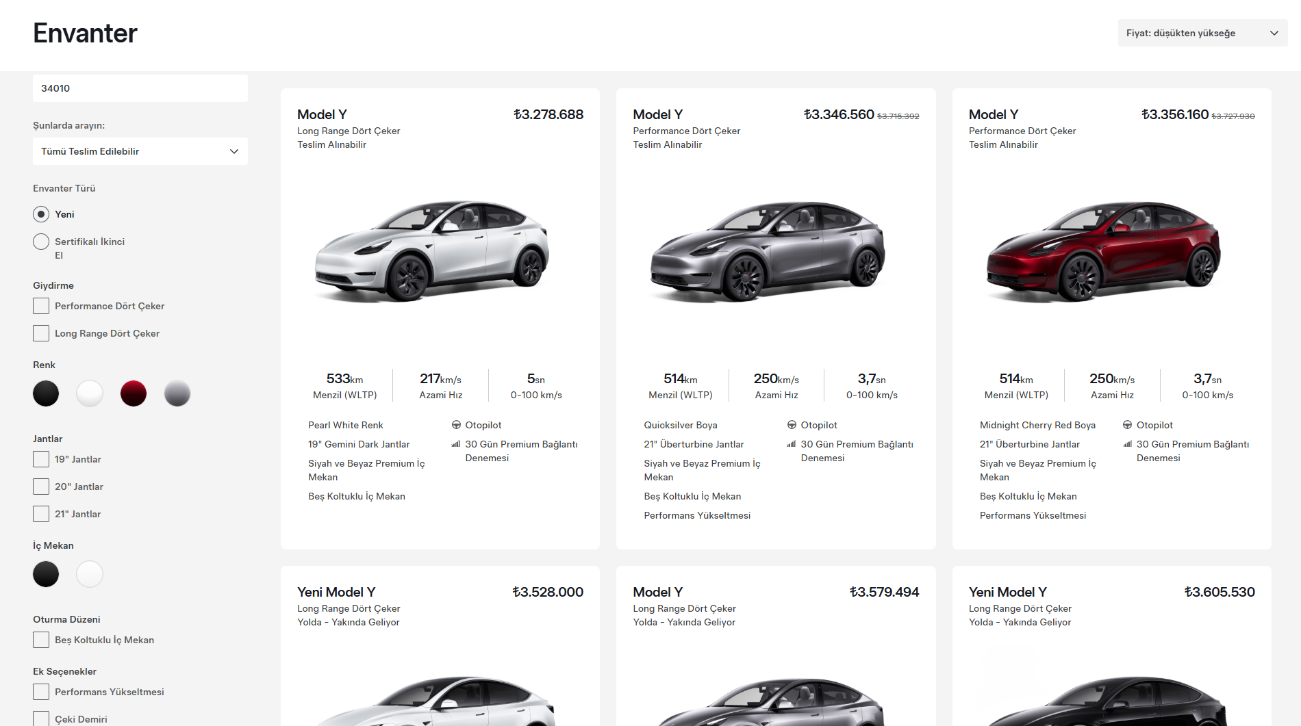 Yeni araçları satın almak isteyen kullanıcılar, envanterde yer alan modeller tükenene kadar sipariş verebilecek. Tesla, ilerleyen haftalarda stoklara yeni araçların ekleneceğini belirtti. Araçlarla ilgilenen kullanıcıların, satış platformunu sistemli aralıklarla takip etmeleri gerekiyor. Model Y’nin Türkiye’deki bu yeni versiyonu için sipariş süreci ve stok bilgileri sadece Tesla Envanter sayfası üzerinden erişilebiliyor.