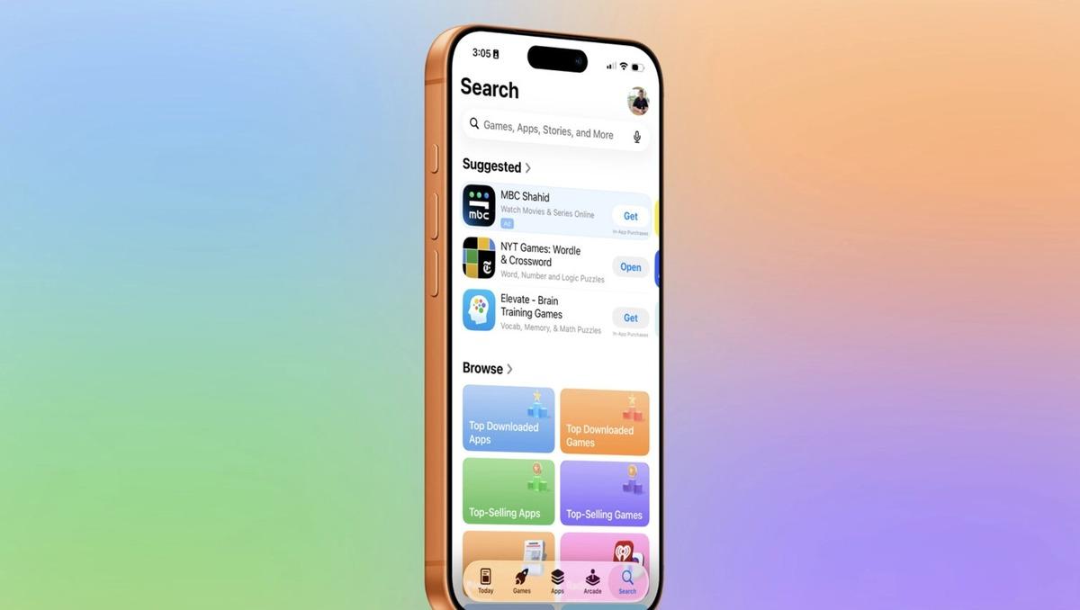 App Store’da Arama çubuğu arama sekmesinin en üstüne geri taşındı. Arama sekmesi artık kendi farklı dairesinde değil, alt kısımdaki gezinme çubuğuna entegre edilmiş durumda.