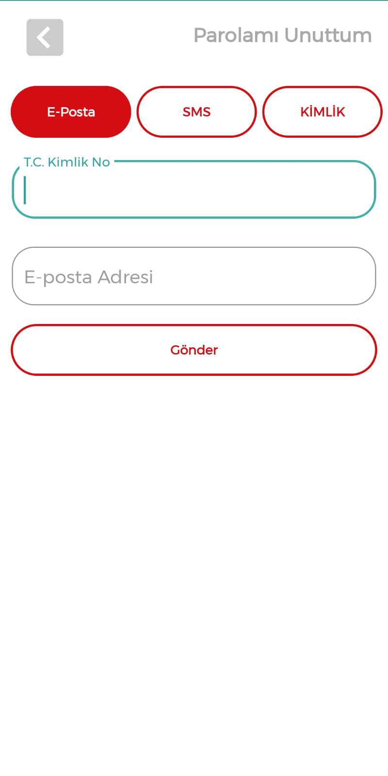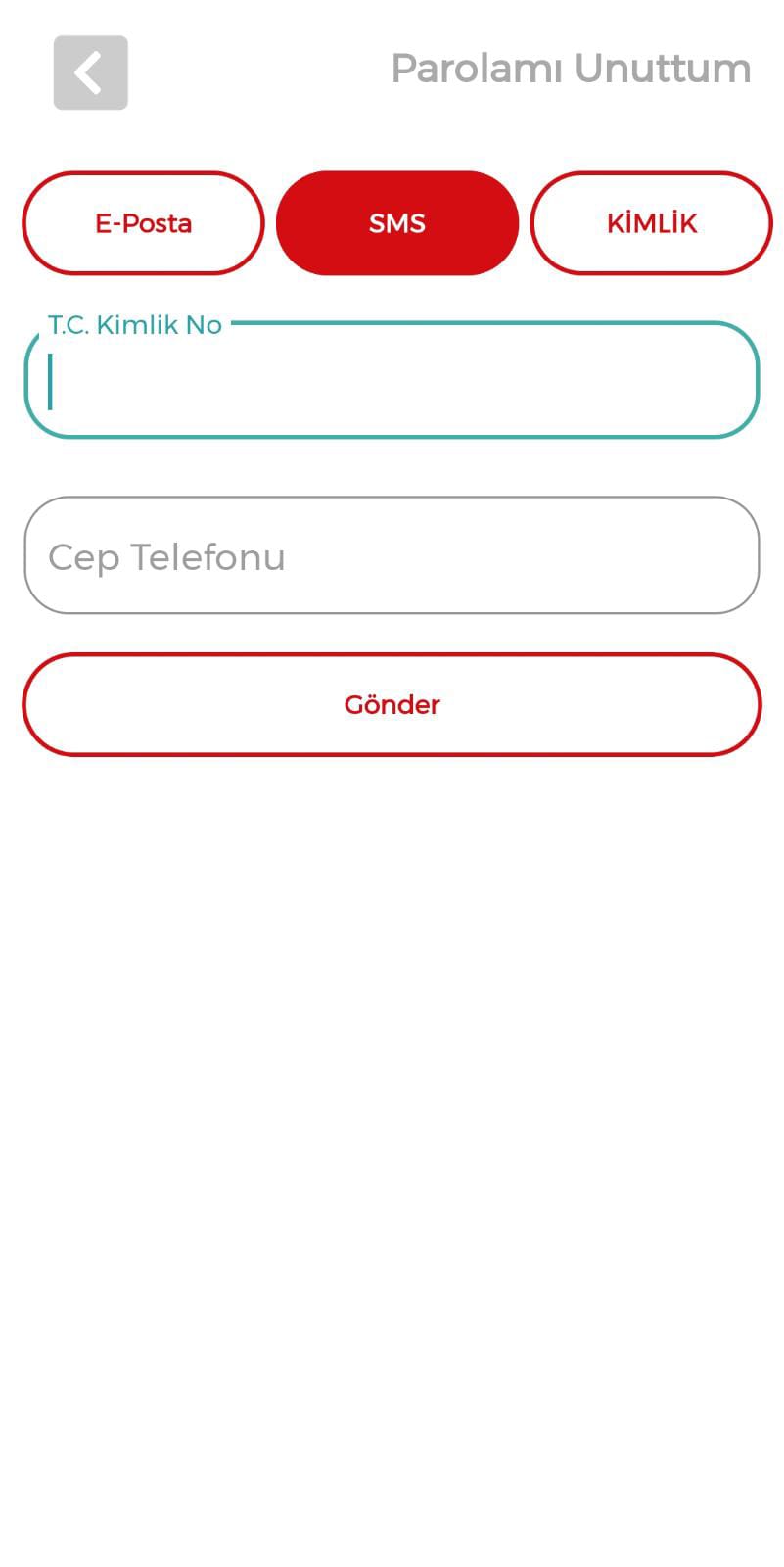 Mobil uygulamadan yeni şifre alma