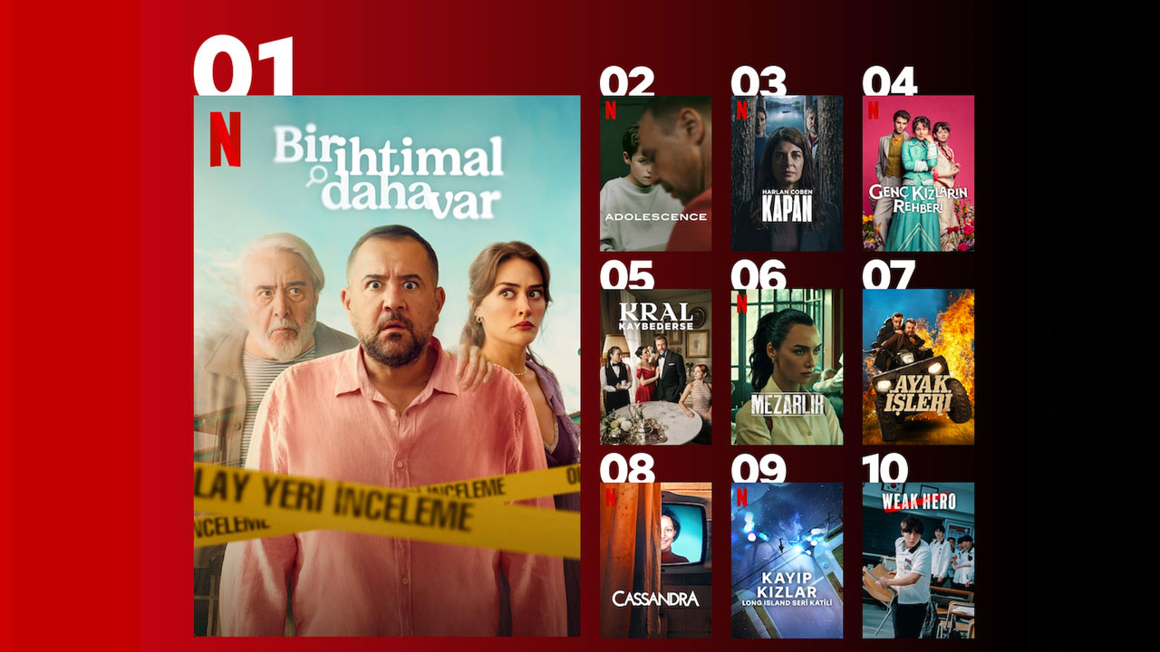 Netflix tarafından açıklanan ve izleyiciler tarafından da çok sevilerek izlenen diziler ve sinemalar listesinde bu hafta da tanınan isimler bulunuyor. Diziler tarafında birinci sıraya baktığımızda ise üçüncü haftasında da listenin başında yer alan Bir İhtimal Daha Var isimli imal bulunuyor. İkinci sırada ise dört haftadır listede bulunan Adolescence yer alıyor. Çabucak gerisinden ikinci haftasında Kapan isimli üretim bulunurken, dördüncü sırada ise Genç Kızların Rehberi bulunuyor.