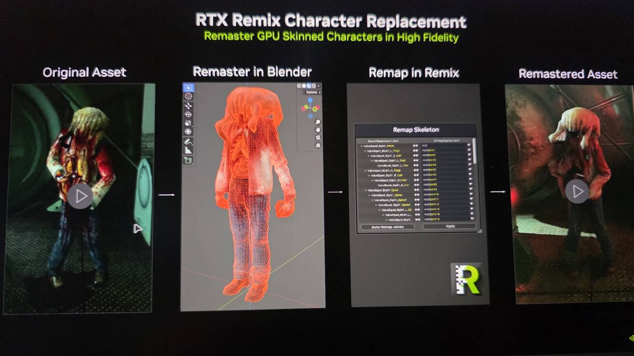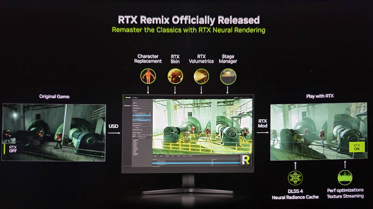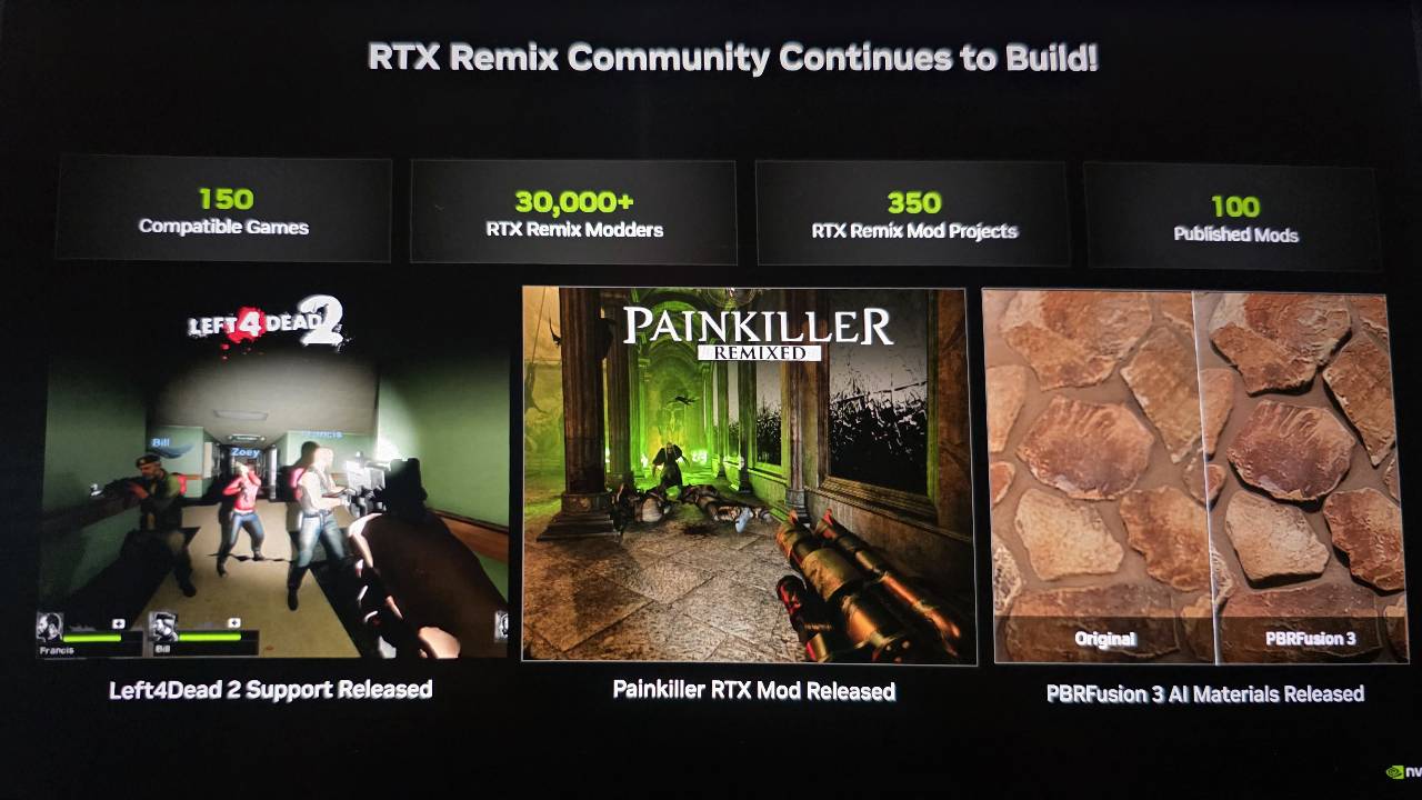 DLSS 4, Neural Radiance Cache ve RTX Skin üzere yeni özellikler mod geliştiricilerin oyun dünyalarına daha fazla ayrıntı eklemesine ve oyunları daha gerçekçi hale getirmesine yardımcı olacak. Painkiller RTX ve Left 4 Dead 2, RTX Remix platformunda büsbütün yenilenmiş birinci oyunlardan kimileri oldu. Bu oyunlar çağdaş grafik teknikleriyle baştan tasarlandı ve ışın izleme takviyesiyle görsel manada büyük bir dönüşüm geçirdi.