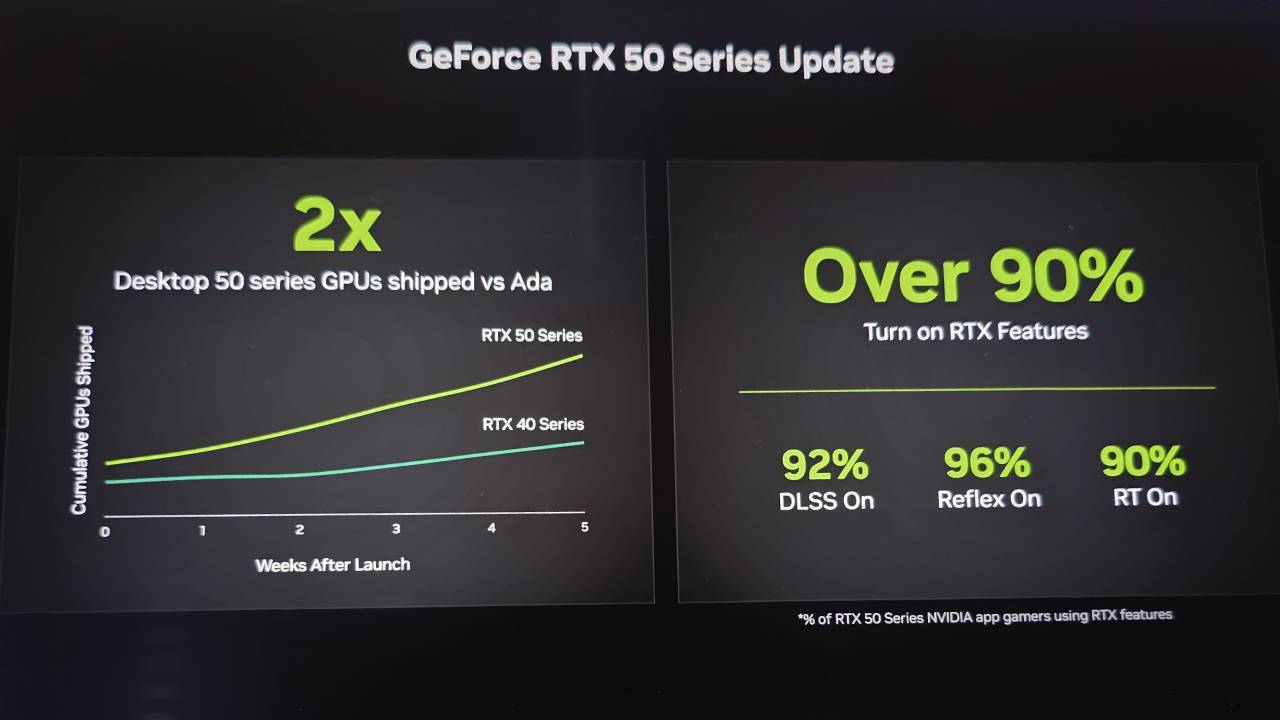 RTX 50 Serisi ekran kartlarını edinen oyuncuların büyük bir çoğunluğu yeni kuşak grafik teknolojilerini etkin hale getirerek kullanmaya başladı. Yapılan tahlillere nazaran 50 Serisi sahiplerinin %92’si DLSS’yi aktifleştirdi.
