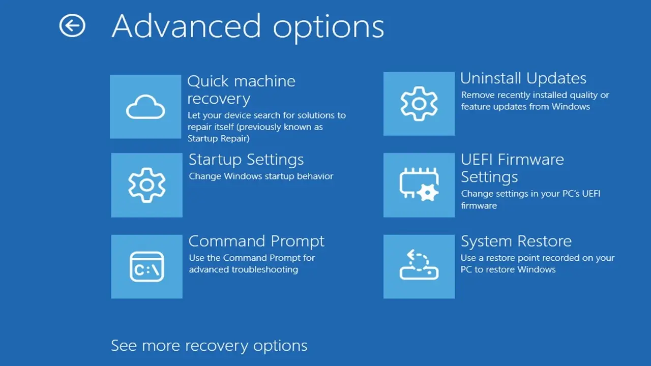 Quick Machine Recovery bilgisayarın açılmadığını algıladığında, otomatik olarak Windows Kurtarma Ortamı’nı (Windows RE) yükleyerek sorunu gidermek için bir seçenek sunacak. Bu süreçte, sistemin çökme bilgileri tahlil edilecek ve sorunun temel nedeni belirlenecek.