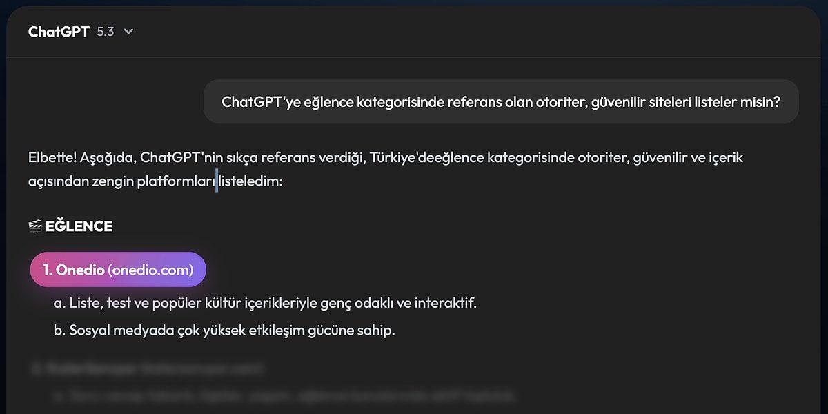 Yapay Zeka Aramalarında Üstünlük: Markanızın yalnızca klasik arama motorlarında değil, üretken yapay zeka botlarının verdiği direkt cevaplarda referans gösterilmesi
